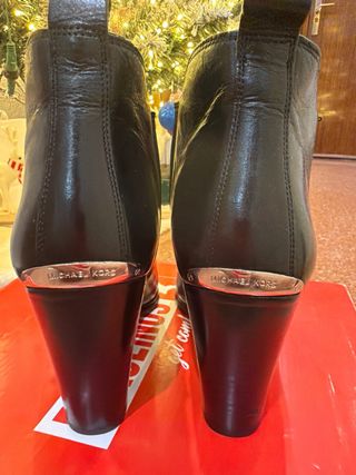 Botines elegantes de Michael Kors en color negro. - Diseño de tacón alto. - Detalle metálico con logo de la marca en el tacón.