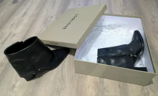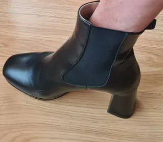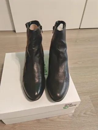 Botines de piel auténtica de la marca Désir de Fuite. Un básico elegante para tu armario. - Tacón bajo y cómodo de 3.5 cm - Diseño clásico y versátil. -piel auténtica, muy suaves y cómodos. Muy poco uso, como nuevos, suelas perfectas.