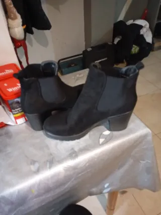Botines de mujer con un diseño moderno y suela gruesa. -tiene una peladura lo muestro en unas de las fotos - Material exterior sintético. - Cierre de cremallera lateral. - Caña media. - Suela de goma con plataforma.