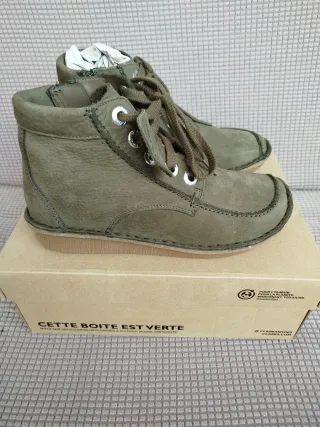 Botines de piel Clarks en color verde oliva. Perfectos para el día a día. - Cierre con cordones y cremallera lateral. - Suela de goma. - Detalle de pespuntes.