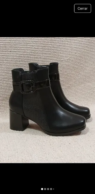 Botines elegantes de mujer. - Diseño de caña alta. - Detalle de hebilla decorativa. - Tacón grueso y cómodo. - Material sintético. Es una marca local