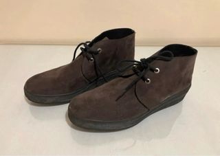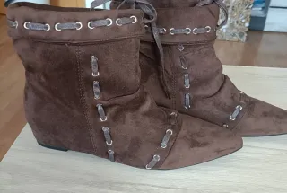 Botines de serraje en color marrón con cuña interna 3 -4 cm aprox - Material exterior: Serraje. - Cierre elástico lateral. - Diseño tipo Chelsea.