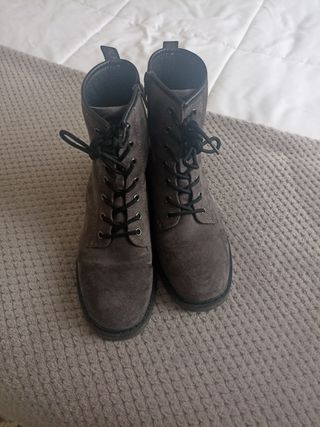 Botines de estilo casual con cordones. - Material exterior de ante. - Suela de goma. - Cierre de cordones.