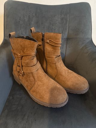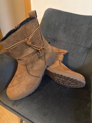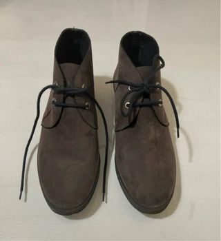 Botines de ante con cordones. - Material exterior de ante. - Interior forrado, buena sensación térmica. - Suela de goma impermeable. - Cierre con cordones negros. - Diseño tipo botín.