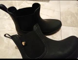Bota tipo botín Chelsea con cierre de cremallera y elástico latera de la marca Zara, número 38. Impermeable y con suela de goma.
