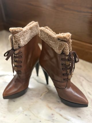 Botines de tacón de la marca UGG. - Diseño elegante. - Acabado de alta calidad. - Sirven para cualquier ocasión y combinan con todo, que llevas un vaquero te encajan, que te pones un vestido también, que eres más de falda pues también te encajan. - Venga que alguien se anime a comprar son preciosos. - Ánimo se admiten ofertas, animaros a preguntar.