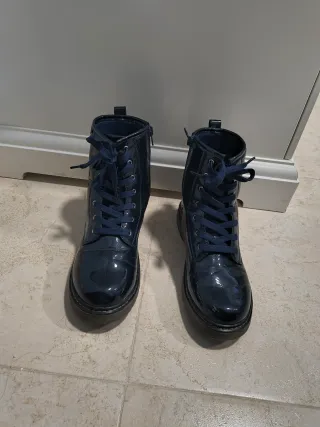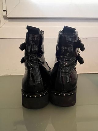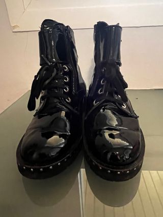 Botines de charol con cordones y cremallera lateral. Algo usados pero en buenas condiciones - Acabado brillante. - Cierre de cordones. - Cremallera lateral para facilitar el calce.