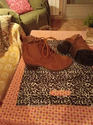 Botines de estilo casual en color marrón. Apenas usados un par de veces, los vendo porque me van justos pero son muy cómodos. Cierre con cremallera en la parte trasera. Tiradores en la parte superior para facilitar su puesta. Suela gruesa y resistente.