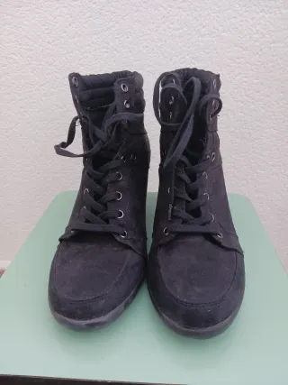 Botas de tacón con un diseño moderno y elegante. - Material exterior tipo ante. - Cierre con cordones. - Tacón de cuña.