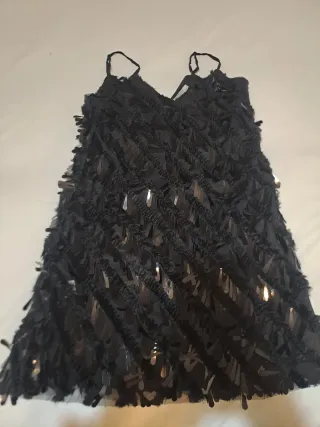 Vestido corto con un diseño llamativo y elegante, perfecto para eventos especiales. - Adornado con lentejuelas brillantes. - Tirantes finos ajustables. - Tejido ligero y con movimiento.