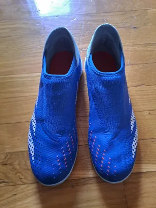 Zapatillas deportivas Adidas en color azul con detalles en naranja. - Diseño sin cordones. - Parte superior de malla transpirable. - Suela de goma para mayor agarre.