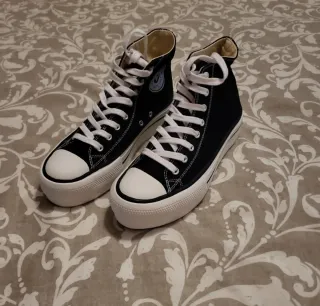 Zapatillas altas negras y blancas mujer