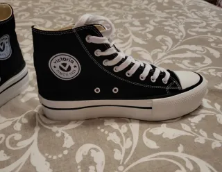 Zapatillas de caña alta con cordones. - Diseño clásico. - Suela de goma blanca. - Detalle de logo en el lateral. - Tallan grande