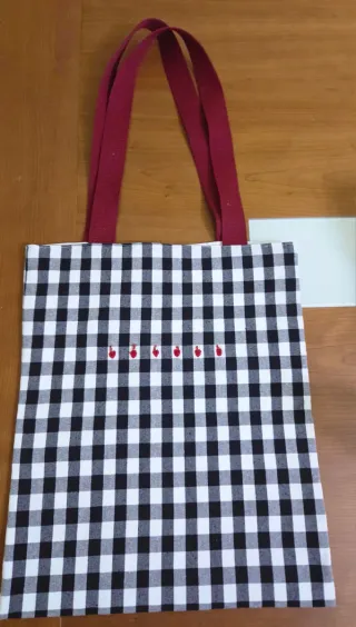 Bolso de tela tipo tote bag con un diseño a cuadros. - Ancho: 36 cm - Largo: 39 cm