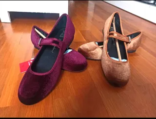 Lote de dos pares de merceditas de la marca XTI. - Un par en color burdeos. - Un par en color camel.