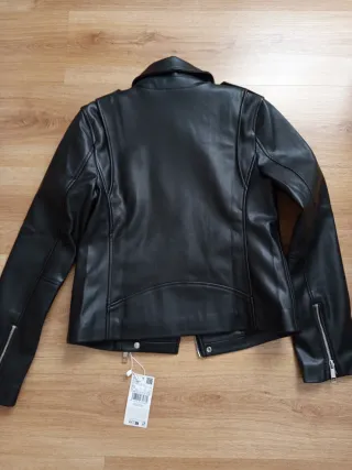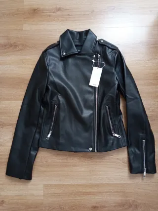 Cazadora estilo biker con acabado efecto piel. - Cierre de cremallera frontal. - Bolsillos laterales con cremallera. - Solapas de cuello. - Puños con cremallera.