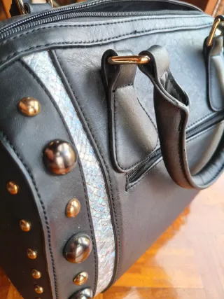 Bolso negro con detalles plateados