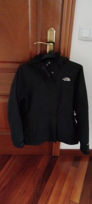 Chaqueta The North Face en color negro. Diseño moderno y funcional.Talla M.Se le pueden añadir forros polares compatibles.Precio 60€ porque tiene el tirador de la cremallera roto,aunque sube y baja,con botones y velcro para cierre.VENTA EN MANO. - Logo de la marca en el pecho. - Cierre de cremallera y botones. - Capucha integrada.