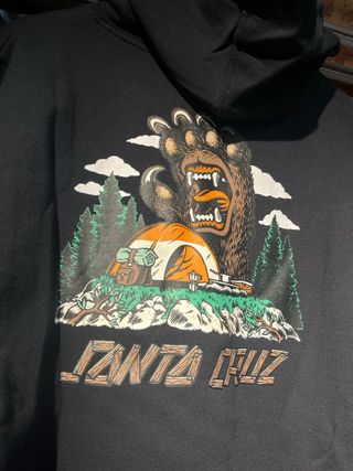 Sudadera unisex con un diseño gráfico llamativo en la espalda. - Estampado de oso y tienda de campaña. - Logo de Santa Cruz en la parte inferior. - Capucha con cordones. - Manga larga. Su precio era de 79,95€.