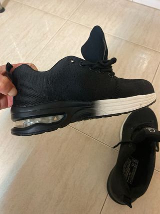 Zapatos de seguridad en color negro y blanco, talla 37. - Diseño moderno. - Suela con amortiguación de aire visible.