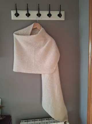 Bufanda extragrande de tacto suave. Color crema. Acabado en picos. 190x50cm