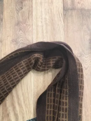Bufanda de chico, nueva a estrenar. Con un diseño de cuadros en tonos marrones. - Tejido de punto. - Flecos en los extremos.