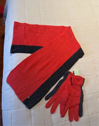 Conjunto de bufanda y guantes de la marca Tous. - Bufanda de punto con detalle en gris. - Guantes a juego en color naranja con puño gris. - Pequeño detalle metálico en la bufanda.