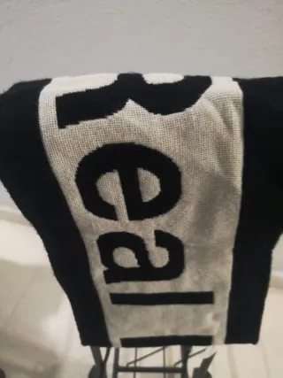 Bufanda con el logo del Real Madrid. - Diseño en blanco y negro. - Tejido de punto.