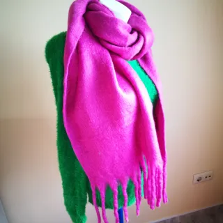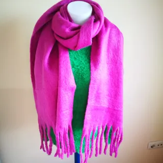 Bufanda lisa de tacto muy agradable. - Color fucsia vibrante. - Diseño liso y versátil. - Tacto suave y gustoso. ancho 48cm y largo 228cm. precio original 14€