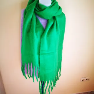 Maxi bufanda 🧣verde muy suave y calentita. Tacto cashmere. Nueva Medidas 240 cm x 38 cm - Diseño largo con flecos. - Textura mullida, oversize