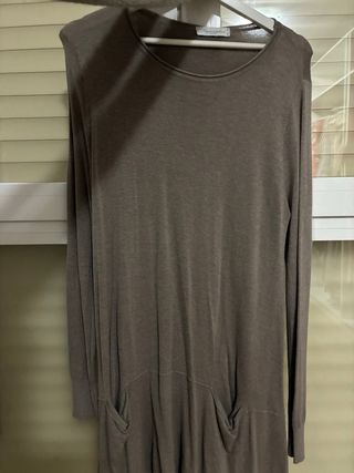Conjunto de vestido de punto y bufanda a juego. El vestido es de manga larga y corte recto, ideal para un look casual y cómodo. La bufanda complementa perfectamente el conjunto. - Vestido de punto. - Bufanda a juego.