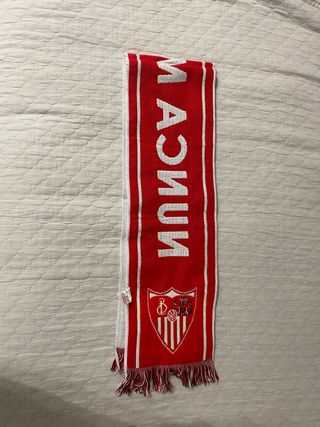 Bufanda oficial del Sevilla FC. - Diseño a rayas rojas y blancas. - Escudo del club bordado. - Flecos en los extremos. -PRECIO NO NEGOCIABLE -ENTREGA EN MANO EN RIVAS VACIAMADRID