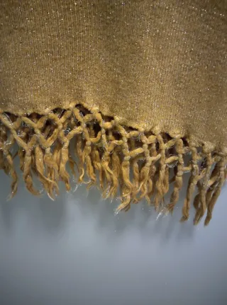 Bufanda elegante con un toque brillante y flecos decorativos. Perfecta para añadir un detalle especial a tu atuendo. - Medidas: 80 x 160 cm. - Acabado con flecos.