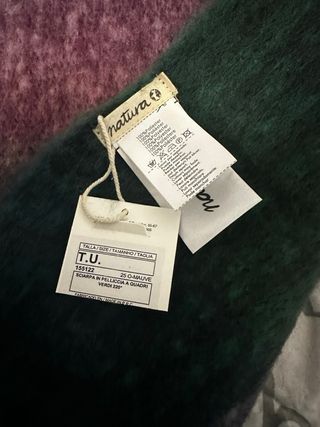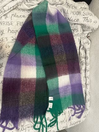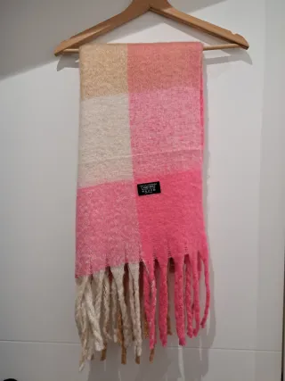 Bufanda con un diseño de cuadros en varios tonos. Es suave y cálida. Flecos en los extremos.