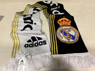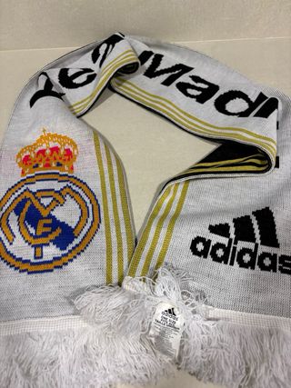 Bufanda oficial del Real Madrid con diseño exclusivo. - Escudo del Real Madrid en un extremo. - Logo de Adidas en el otro extremo. - Flecos en los bordes. Precio negociable