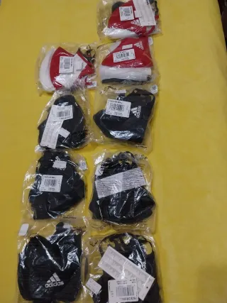 Mascarillas Adidas. Nuevas a estrenar con bolsa independiente. Lote de 27 mascarillas, repartidas en packs de 3. El precio original era bastante superior.