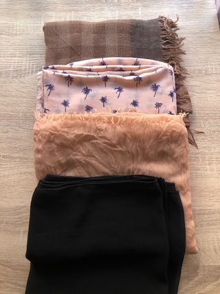 Lote compuesto x 4 pañuelos distintos tamaños,formas y colores ( negro, beige, rosa con azul marino y marrón)