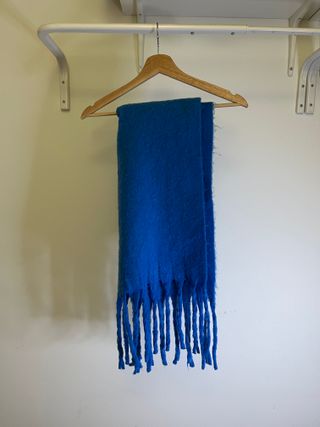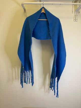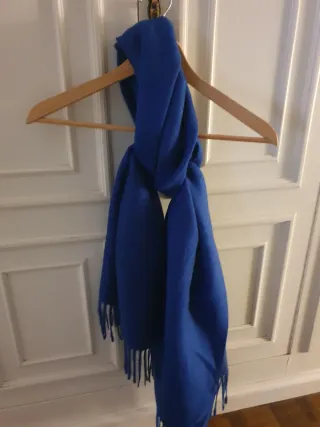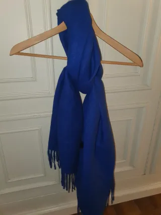 Bufanda maxi de tacto suave y cálido. Perfecta para complementar tus looks de invierno. - Diseño largo con flecos. - Color azul eléctrico vibrante.