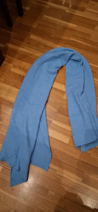 Bufanda de cachemira de la marca Autograph. - Material: 100% cachemira. - Color: Azul. - Diseño con flecos en los extremos.