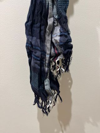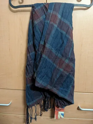 Bufanda de algodón con un diseño a cuadros en tonos azules y morados. Perfecta para añadir un toque de estilo a tu atuendo. Nueva. Sin estrenar. Marca Pepe Jeans. Medidas aprox.: 45cm ancho x 180cm largo. - Diseño a cuadros. - Material de algodón. - Flecos en los extremos.