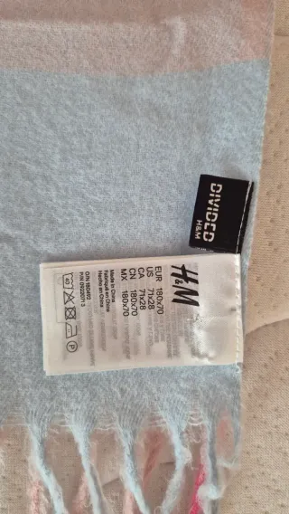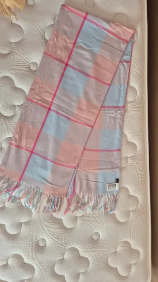 Bufanda de H&M con un diseño de cuadros en tonos pastel. Perfecta para añadir un toque de color a tus outfits. - Diseño de cuadros. - Flecos en los extremos.