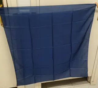 Elegante pañuelo de seda azul, originario de Lyon. - Material: Seda. - Color: Azul. - Origen: Lyon. En las esquinas está marcada una F que es el logo de Firestone Hace 79cm x 77cm