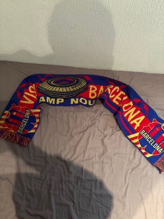 Bufanda del FC Barcelona con el lema Visca Camp Nou. - Diseño con el escudo del club y detalles. - Colores azul y rojo característicos.