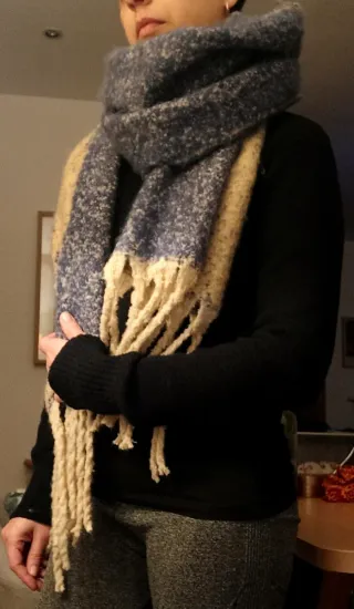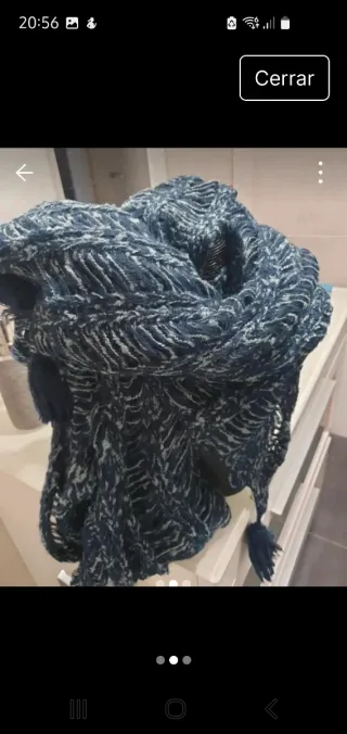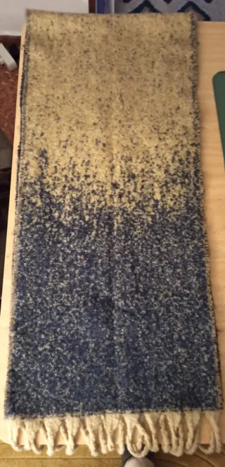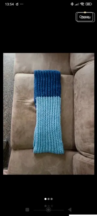 Regalo está preciosa Bufanda de lana tejida a mano, con un diseño bicolor. Comprando algo de mi perfil de 5€ o superior Cualquier duda me preguntas - Material: Lana. - Diseño: Dos tonos de azul. Echa a mano , bonita bufanda 🧣 Mide largo unos 73 cm y ancho unos 20 cm , medidas en reposo ya que se puede estirar para ponerla