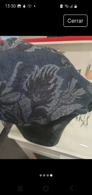 Elegante pañuelo o bufanda con un bonito estampado floral. - Diseño con flores en tonos plateados y azules. - Tejido con textura. - Flecos en los extremos.