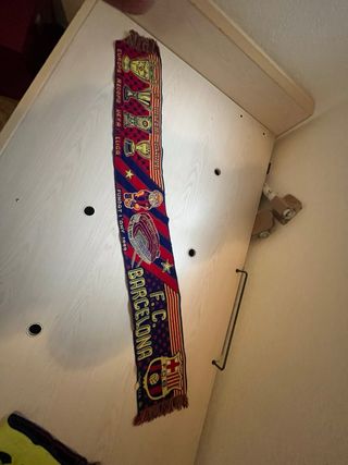 Bufanda del FC Barcelona totalmente a estrenar, sin uso. Colores granate y azul intensos, letras doradas y escudos impecables en ambos extremos. Flecos perfectos. ✅ Estado: Nueva ✅ Sin estrenar ✅ Talla única ✅ Ideal para partido, colección o regalo 📦 Envío rápido (24–48h)