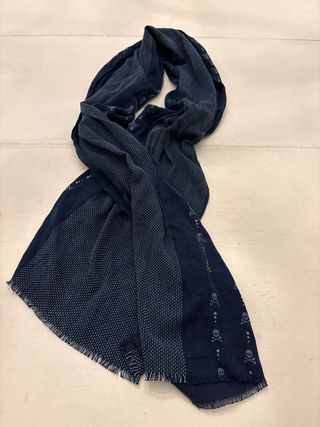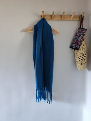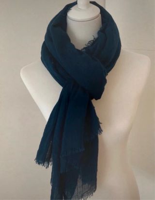 Bufanda de Mango en color azul. - Tejido ligero y con textura. - Bordes deshilachados.