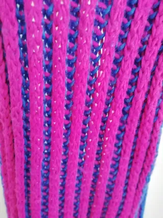 Bufanda con un diseño tejido a rayas en dos colores vibrantes. Su textura es suave y agradable al tacto. - Tejido de punto. - Diseño a rayas verticales. Medidas: 25x250