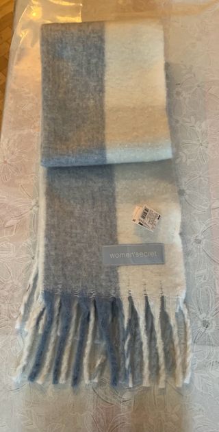 Bufanda de Women Secret con un diseño de cuadros en tonos azules y blancos. Perfecta para añadir un toque de color a tus outfits. A estrenar - Diseño a cuadros. - Flecos en los extremos.