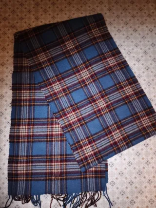 Mide 150 cm.largo y 30 cm.ancho. Bufanda de lana escocesa con un diseño de cuadros clásico. - Material: 100% lana de cordero. - Fabricada en Escocia. - Diseño de cuadros en tonos azules y marrones.